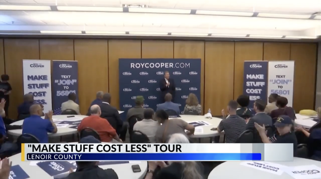 - Reporter: “Roy Cooper’s message is loud and clear – he wants to bring the cost of living down for families here in North Carolina.”