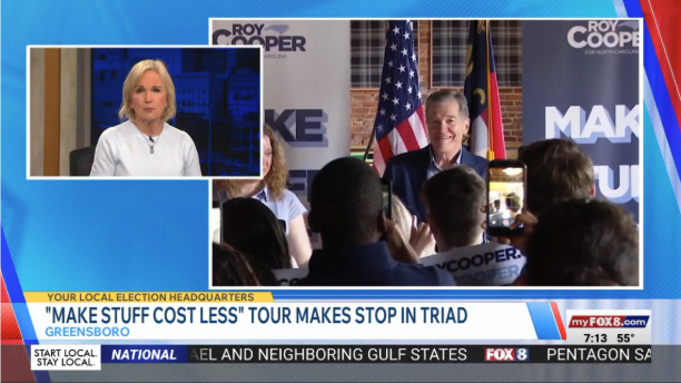 WXII: Roy Cooper Holds Make Stuff Cost Less Event in Greensboro